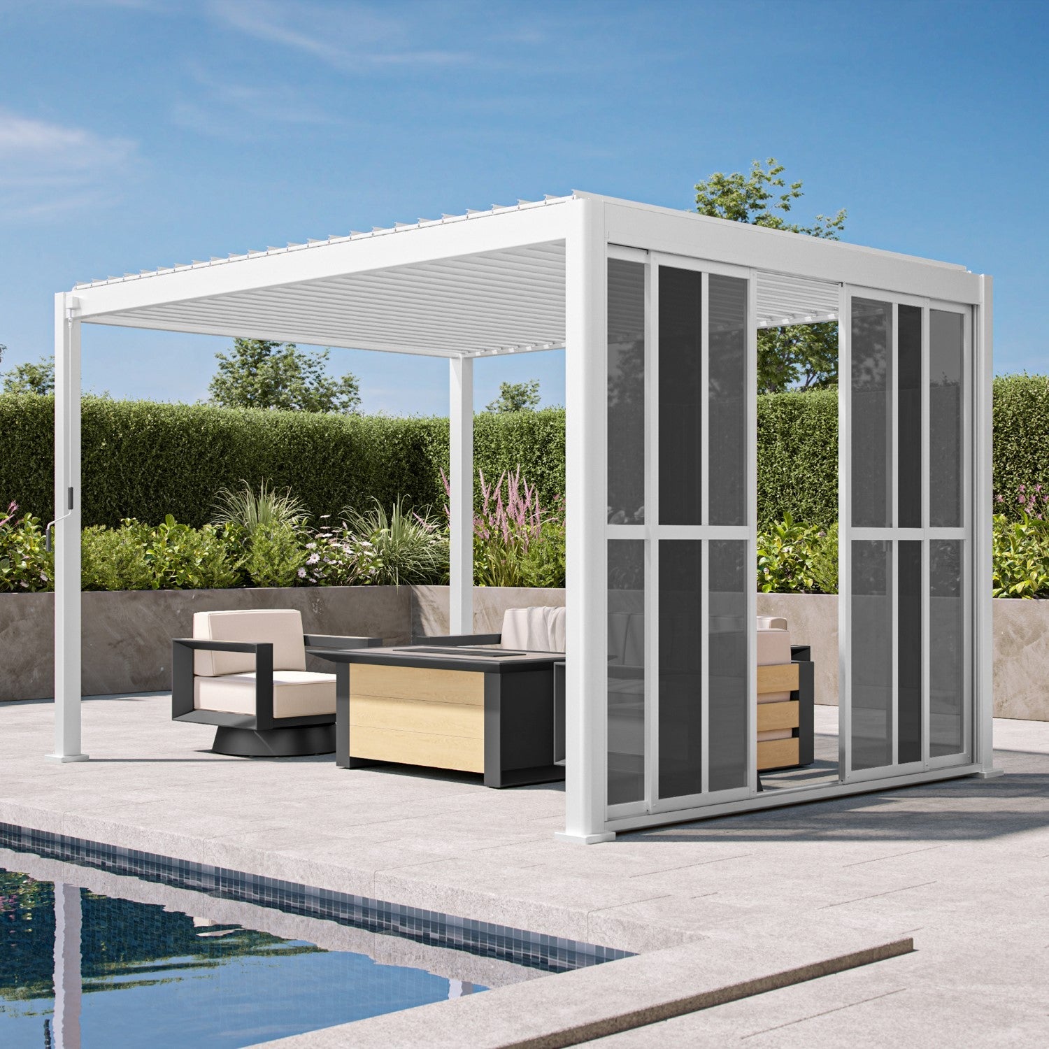 Models are engineered to exceed most residential codes. Typical ratings by model: 13.8–17.7 lbs/ft² snow load and 73–82 mph wind speed. In extreme weather, keep the louvers open to reduce uplift.