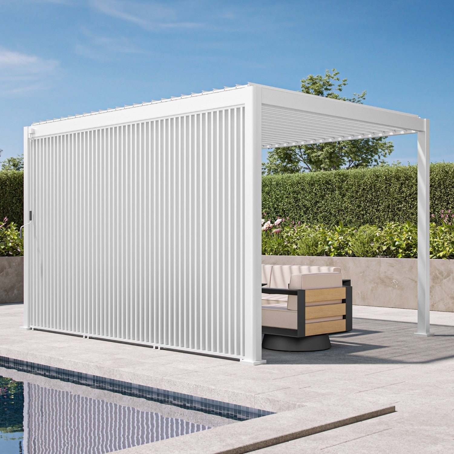 Models are engineered to exceed most residential codes. Typical ratings by model: 13.8–17.7 lbs/ft² snow load and 73–82 mph wind speed. In extreme weather, keep the louvers open to reduce uplift.