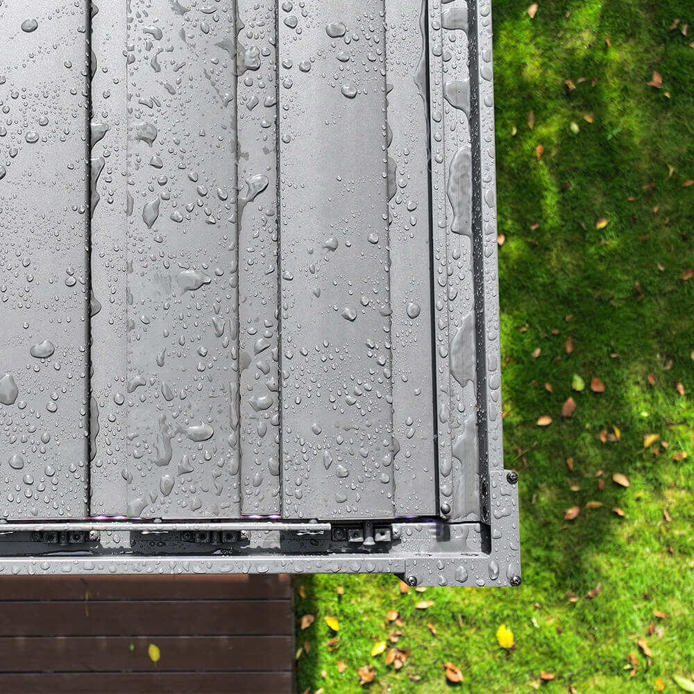 Models are engineered to exceed most residential codes. Typical ratings by model: 13.8–17.7 lbs/ft² snow load and 73–82 mph wind speed. In extreme weather, keep the louvers open to reduce uplift.
