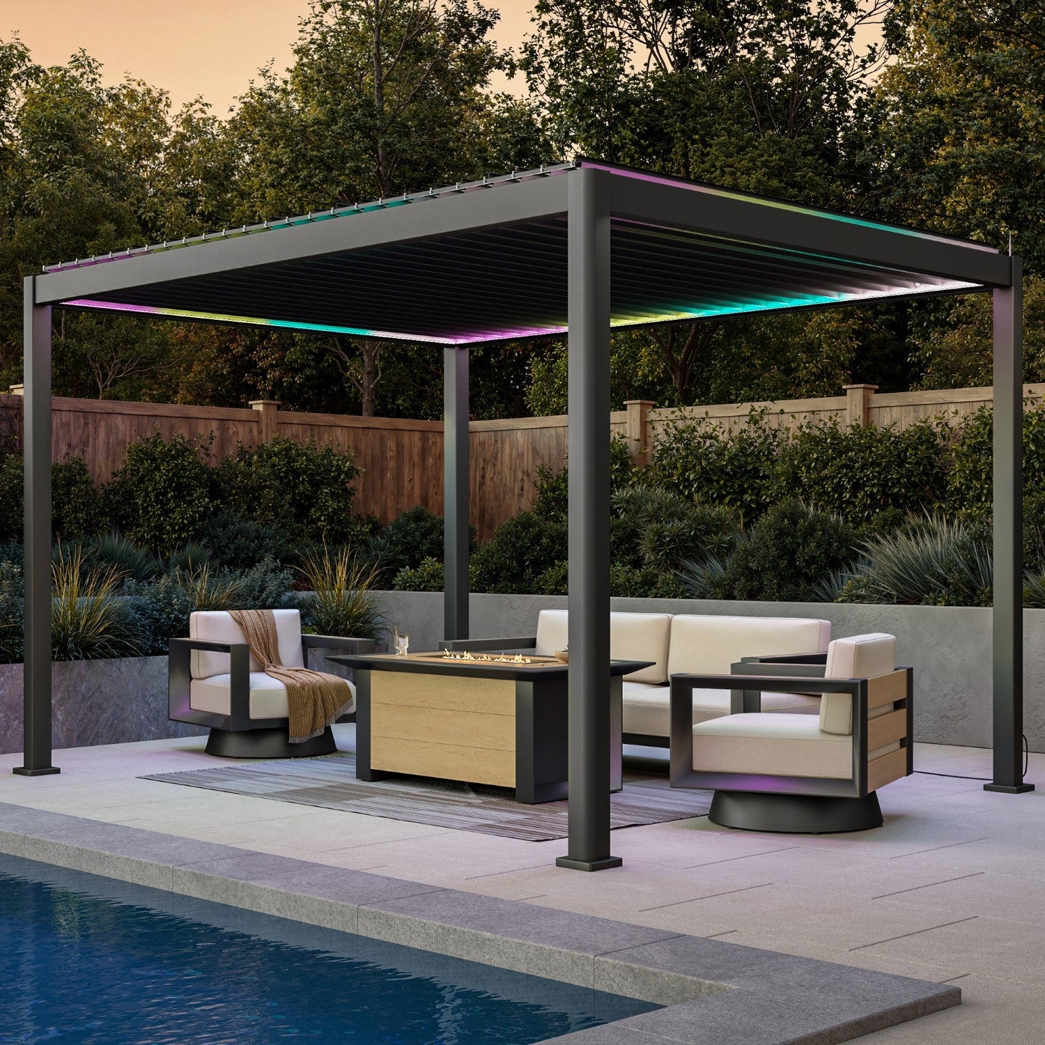 MIRADOR 111SR E-motion 10'x13' Charcoal PERGOLA, Adjustable Roof, Durable, with aluminum and alloy steel structure.