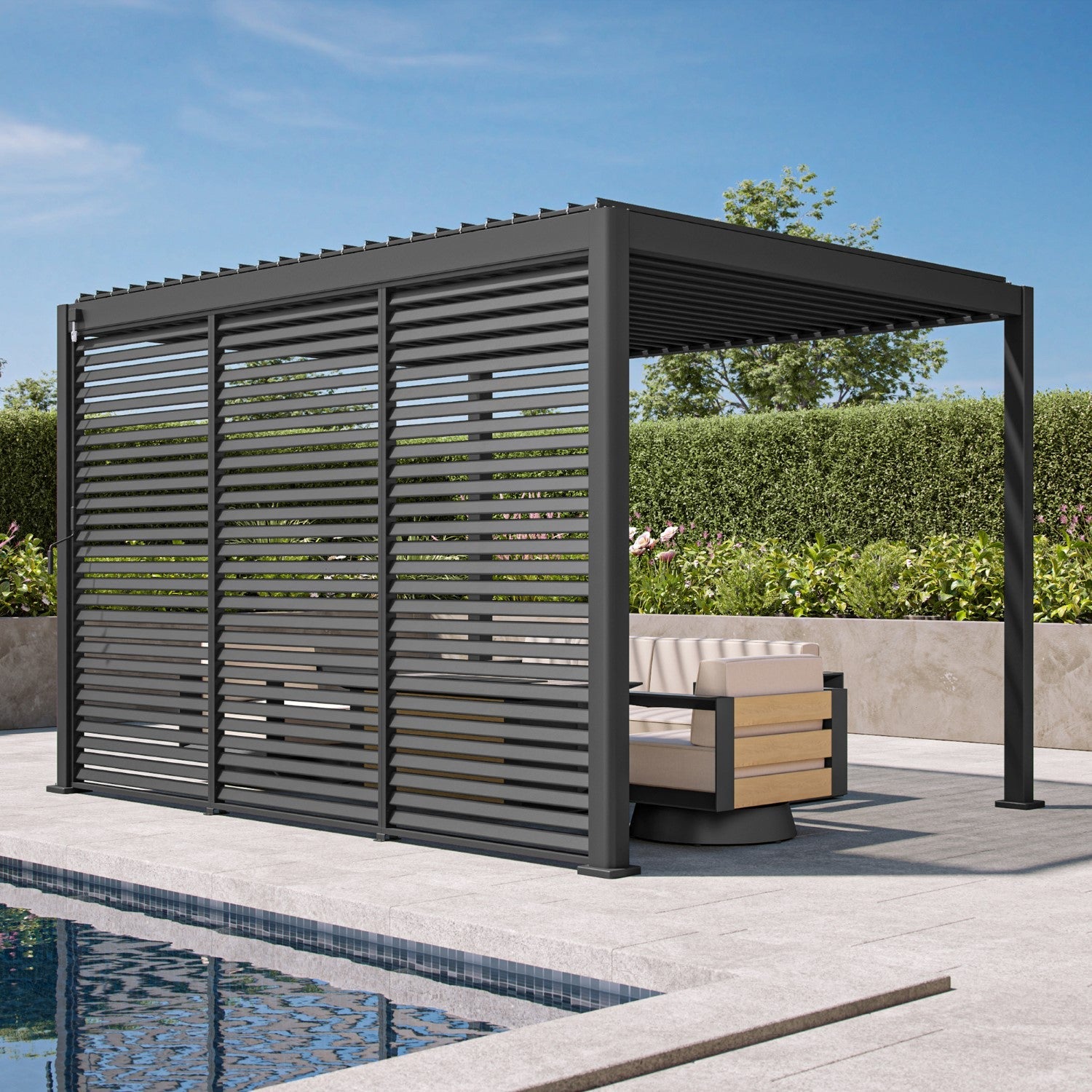 Models are engineered to exceed most residential codes. Typical ratings by model: 13.8–17.7 lbs/ft² snow load and 73–82 mph wind speed. In extreme weather, keep the louvers open to reduce uplift.