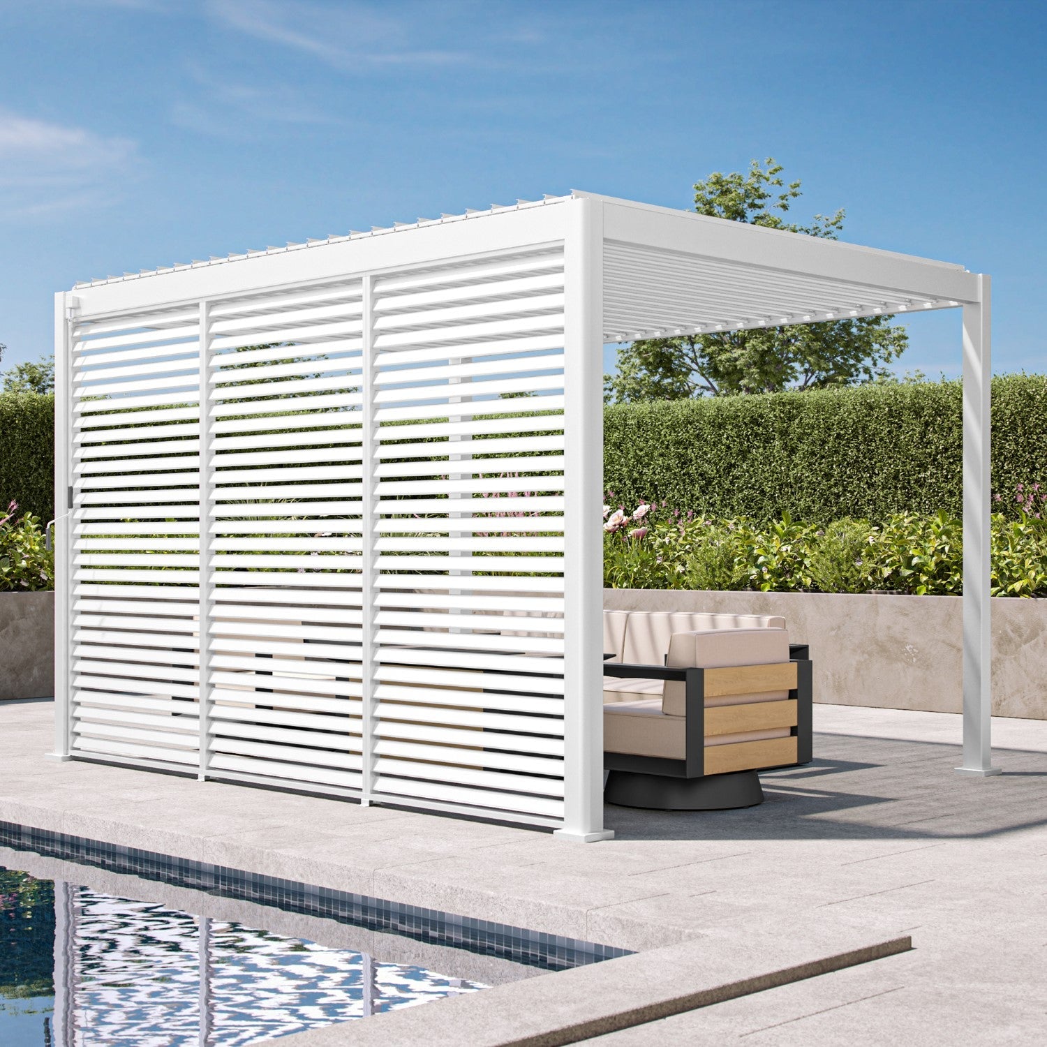 Models are engineered to exceed most residential codes. Typical ratings by model: 13.8–17.7 lbs/ft² snow load and 73–82 mph wind speed. In extreme weather, keep the louvers open to reduce uplift.